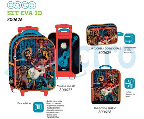 Conjunto De Mochila Coco Set Eva 3d Rojo y NegroConjunto De Mochila Con Luces Hot Wheels Azul Coleccion A