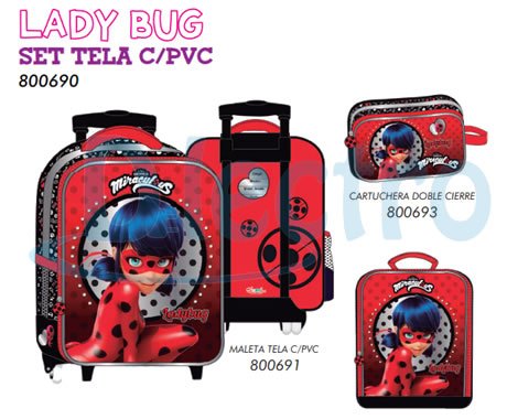 Conjunto De Mochila Lady Bug Set Tela c/pvc 800690Ruedas de silicona