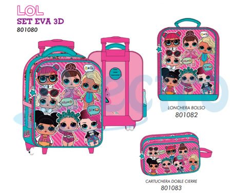 Conjunto De Mochila Lol 801084 Color RosadoConjunto De Mochila Lol Set Eva 3D Rosado