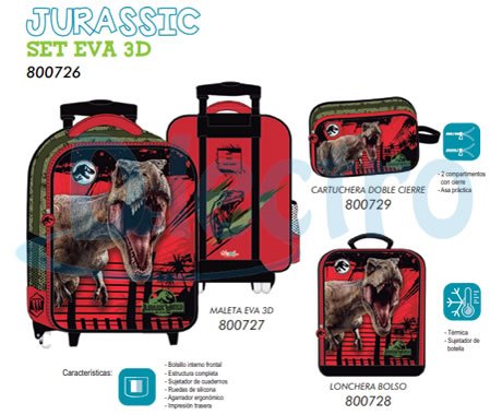 Conjunto De Mochila Jurassic Set Eva 3d Rojo y Negro