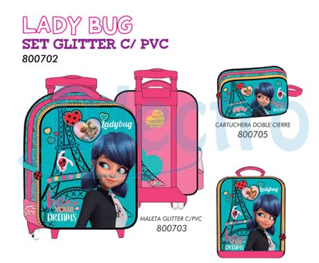 Conjunto De Mochilas Lady Bug Set Glitter c/pvc 801049